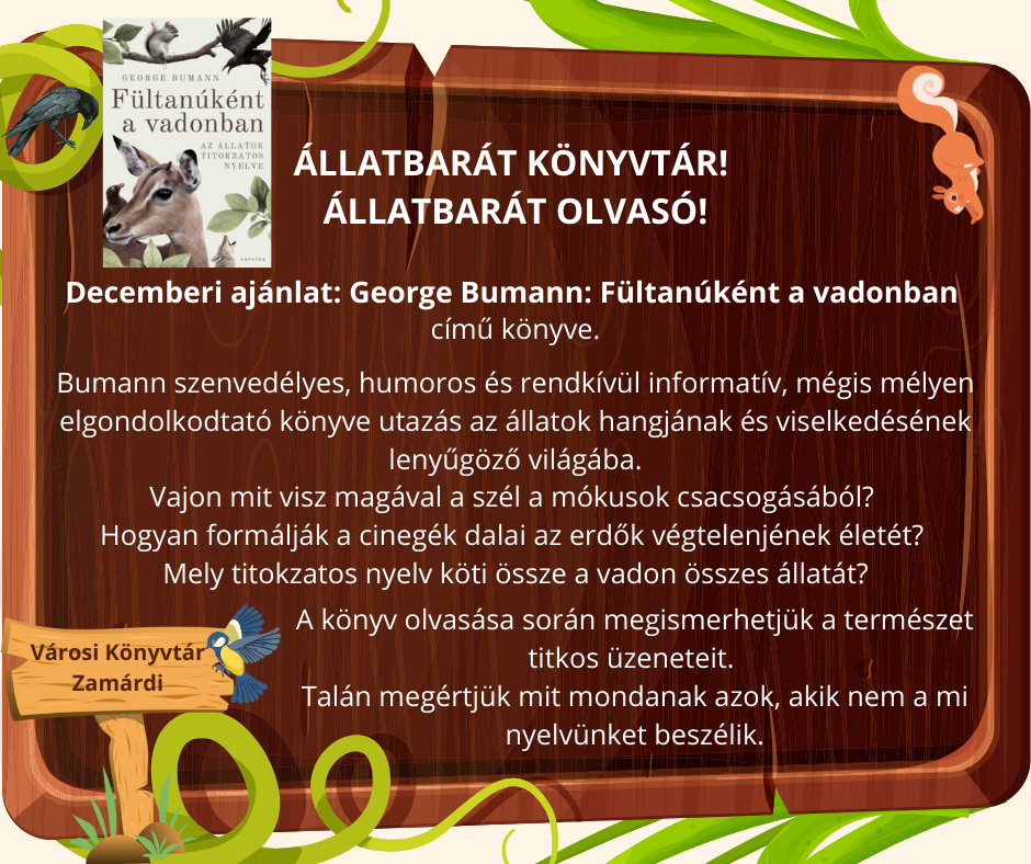 Könyvtárunk elkötelezi magát az állatvédelem népszerűsítése mellett.