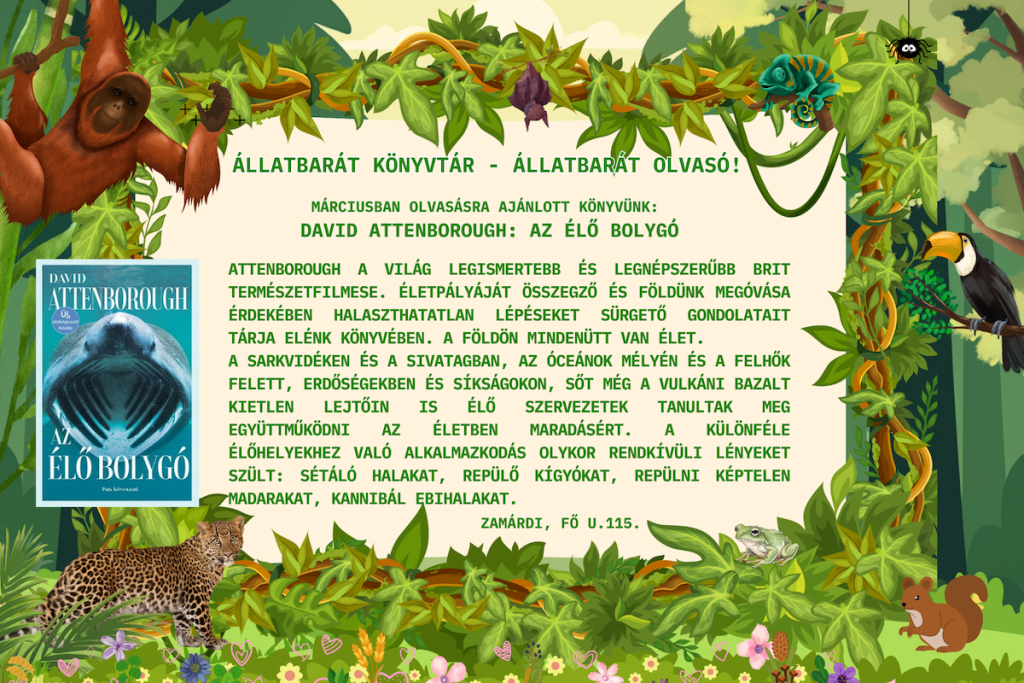 Ehhez kapcsolódva jött létre az Állatbarát Könyvtár Program, melyhez könyvtárunk is örömmel csatlakozott.